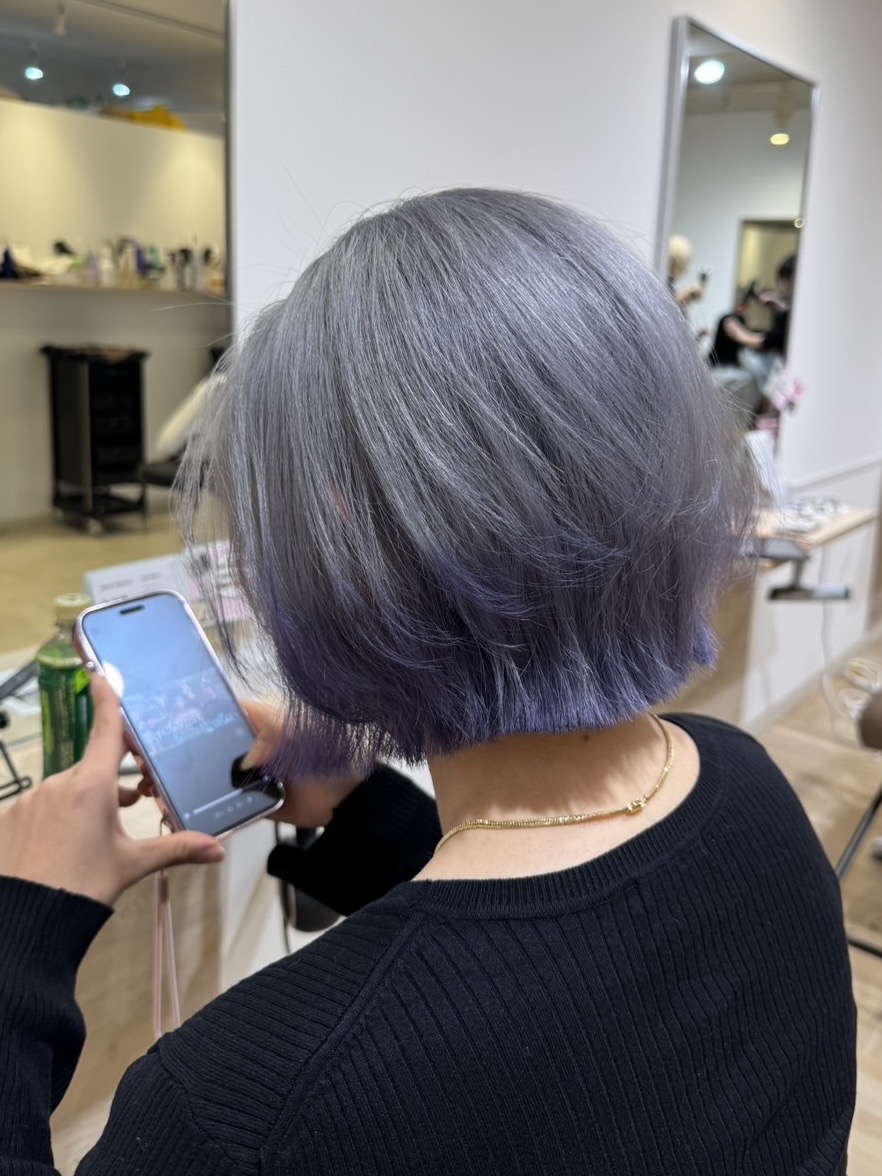 今回お届けするのは、透明感のあるグレーをベースに、毛先へ向かって柔らかなパープルを重ねた裾カラーのデザインです✨